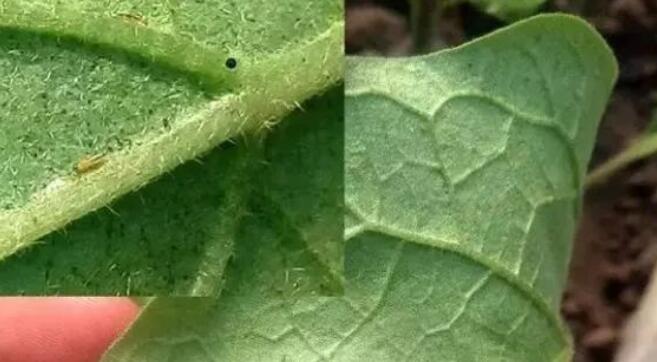 茶黄螨体积极小,肉眼通常难以识别。植株被螨虫危害的主要症状表现为叶片变窄、僵硬直立,向下皱缩或扭曲畸形,最后秃尖。叶片会变小变硬变厚,最主要的是叶背面油渍状,有茶锈色。