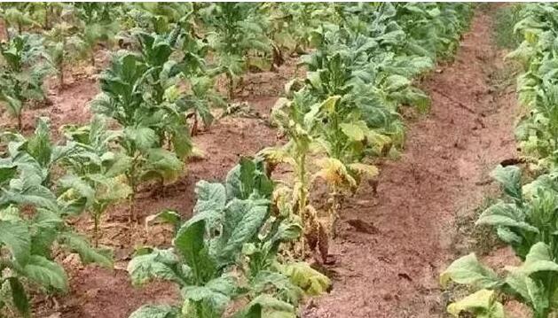 在生长过程中由于叶面积大,高温和强光双重作用使作物的叶片蒸腾作用加强,叶片蒸腾水分的速度大于根系的水分吸收转运的速度,这样就极易造成植株处于缺水状态,从而使叶片气孔被迫关闭,叶片表面脱水,植株下部叶片易向上卷缩。