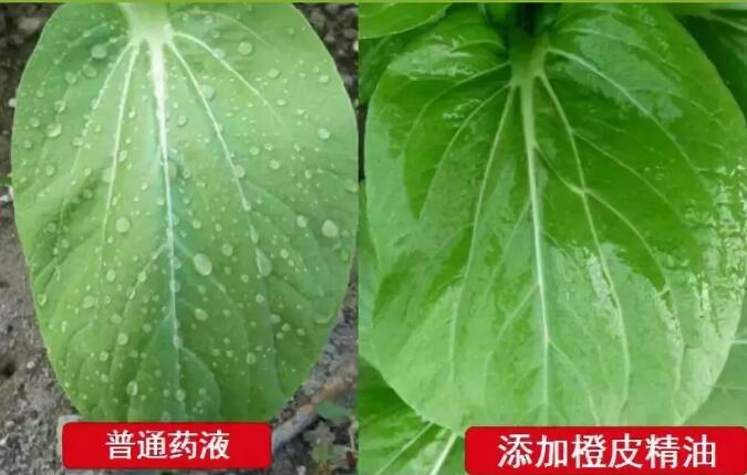 橙皮精油在低浓度时,具有优越渗透性、展着性,促使农药和肥料快速被吸收,喷后22分钟完全干燥。