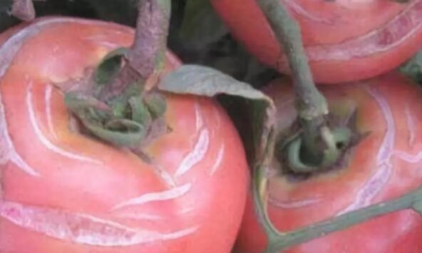3、果面露水严重是皴皮发生的重要原因,很多棚室不覆膜,夜间蒸发的水分大都在果实、叶片等表面凝结,天亮后随着棚内气温的快速升高,果实表面温度不均,从而造成皴裂。 4、用药不当:喷用农药浓度高时,一些农药品种会刺激果皮,或使果皮变硬或使其生长发育变慢,果肉却正常生长,也会使果皮破裂引发皴皮。
