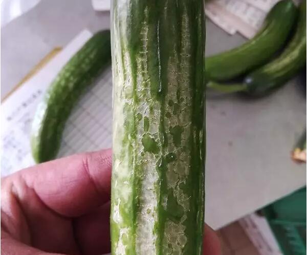 2、通风不良:通风不合理是造成瓜果皴皮的最主要的因素,一般在通风口下发生最为严重,尤其是秋冬季节,在棚内温度较高、湿度较大特别是存在露水时突然通风,造成瓜条表皮温湿度剧烈变化,会造成瓜条表皮皴皮。