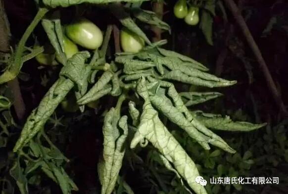 如激素类2,4-D使用不当造成的药害,会导致叶片或生长点弯曲,新生叶也不能正常的展开,叶边缘扭曲畸形,茎蔓凸起,颜色变浅。