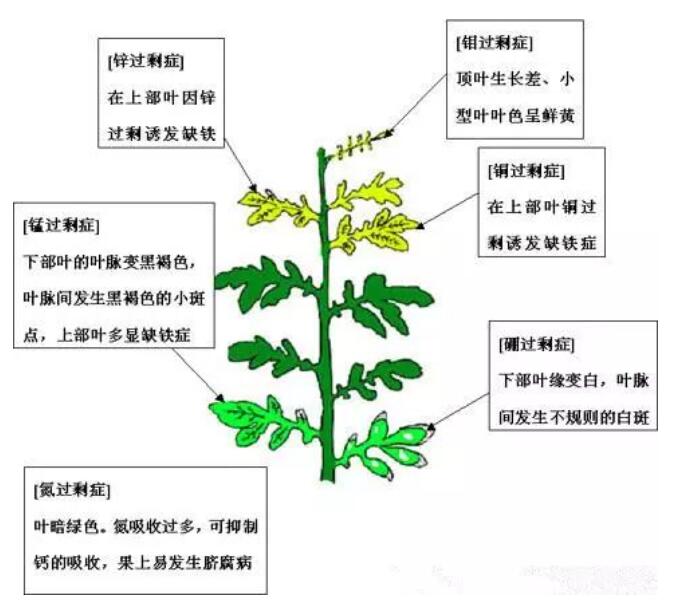 1、营养元素过剩:过剩的某些元素会影响其他元素的吸收,导致植物生长受阻。