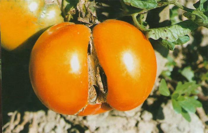 为达到保花保果的效果,番茄生产过程中过多使用2,4-D或防落素等植物生长调节剂,但是使用过程中药剂使用浓度过大、蘸花时间选取不当、温度不合适、重复蘸花等因素,均容易形成畸形果。